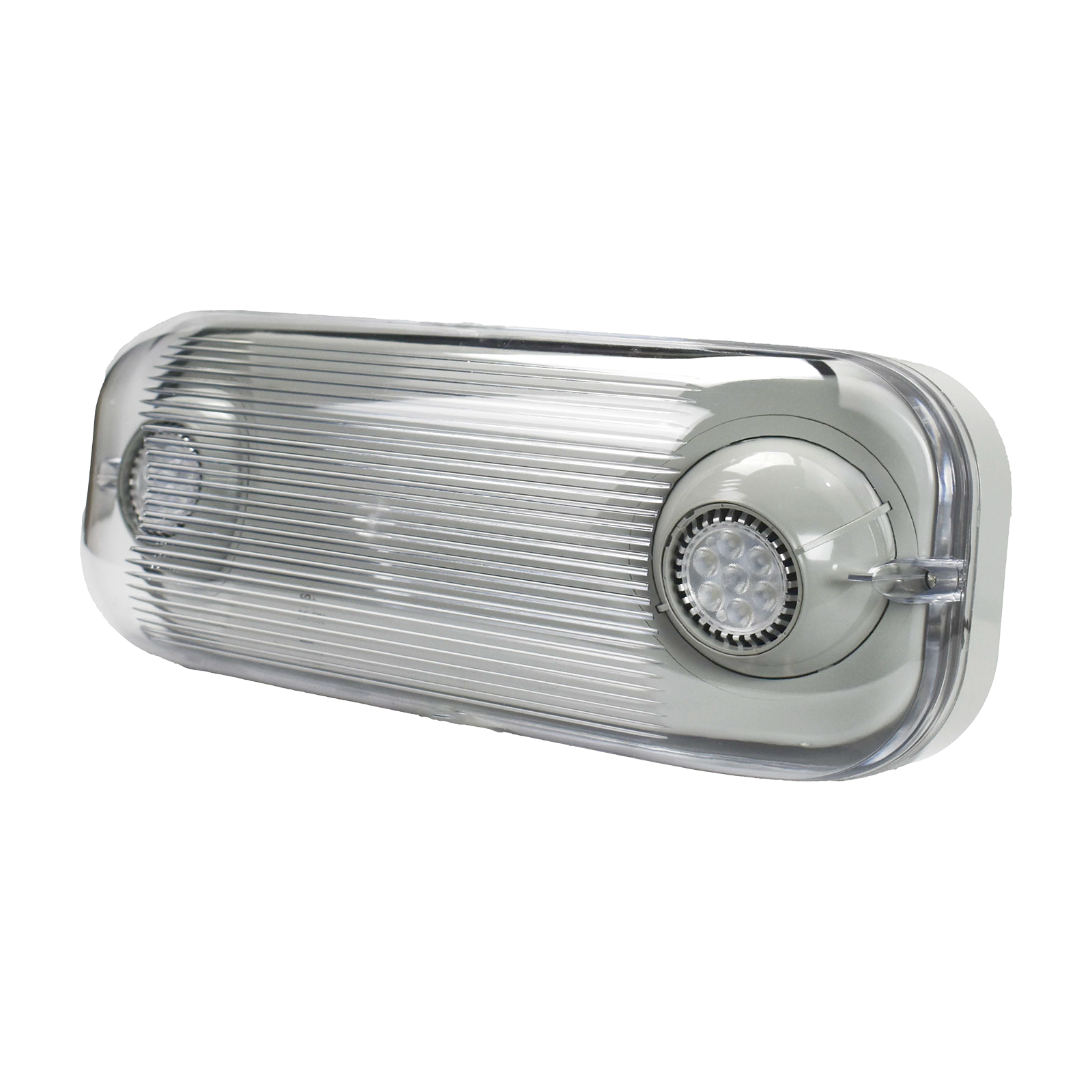 ILLUMINATION Two fully adjustable semi-recessed, round 7-watts LED MR16 lamp heads for optimal light distribution Ultra-bright, energy efficient, long-life White LED lamps provide up to 76-ft center-to-center spacing with 3-ft path of egress at 7.5-ft mounting height.