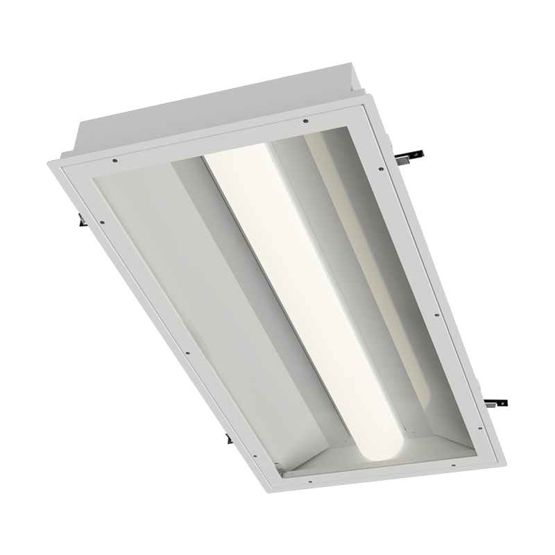 MOUNTING: Recessed grid and recessed flanged applications. Easy installation with adjustable 90° swing arm system standard. Universal mounting allows for both recessed flanged and recessed grid mounting.